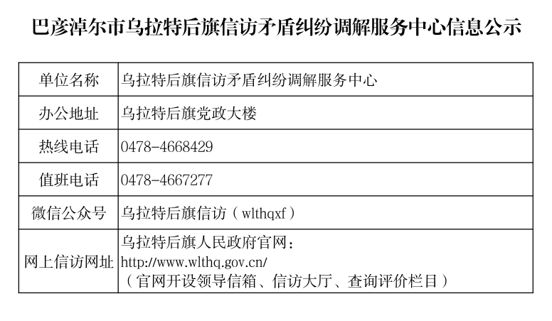 巴彦淖尔市乌拉特后旗信访矛盾纠纷调解服务中心信息公示