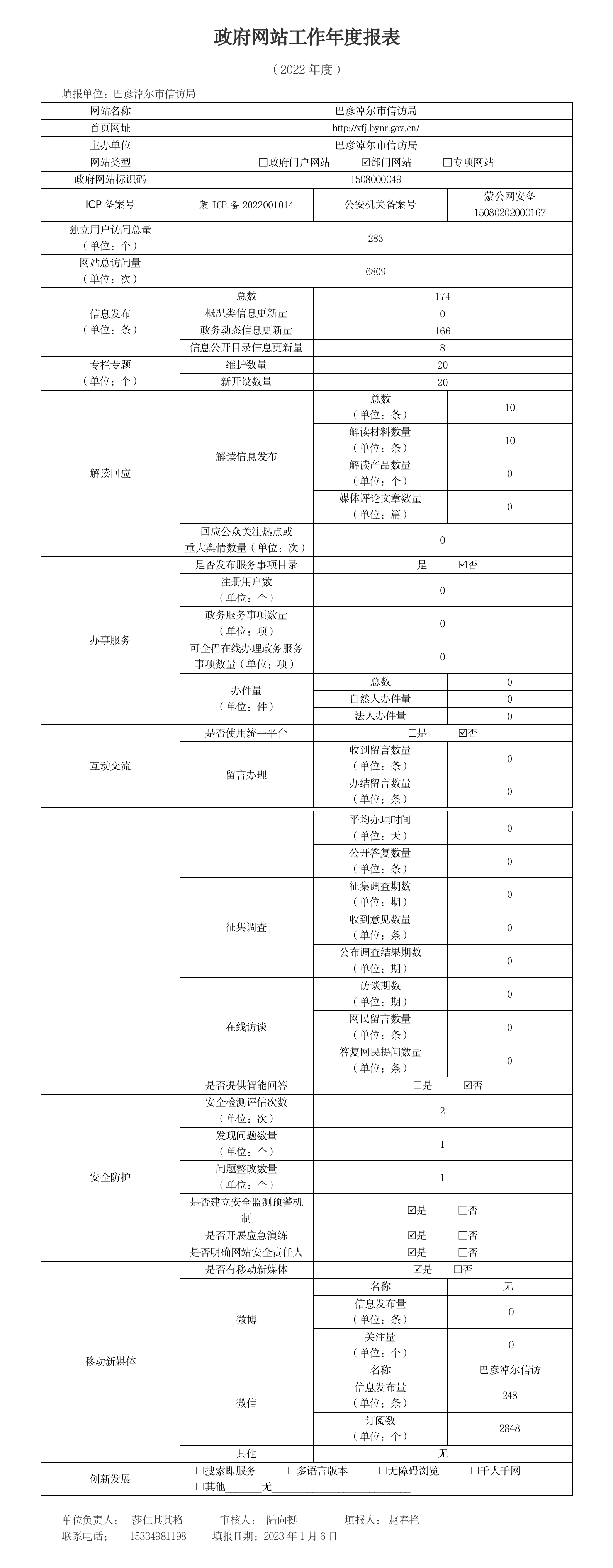 2022年巴彦淖尔市信访局政府网站工作年度报表